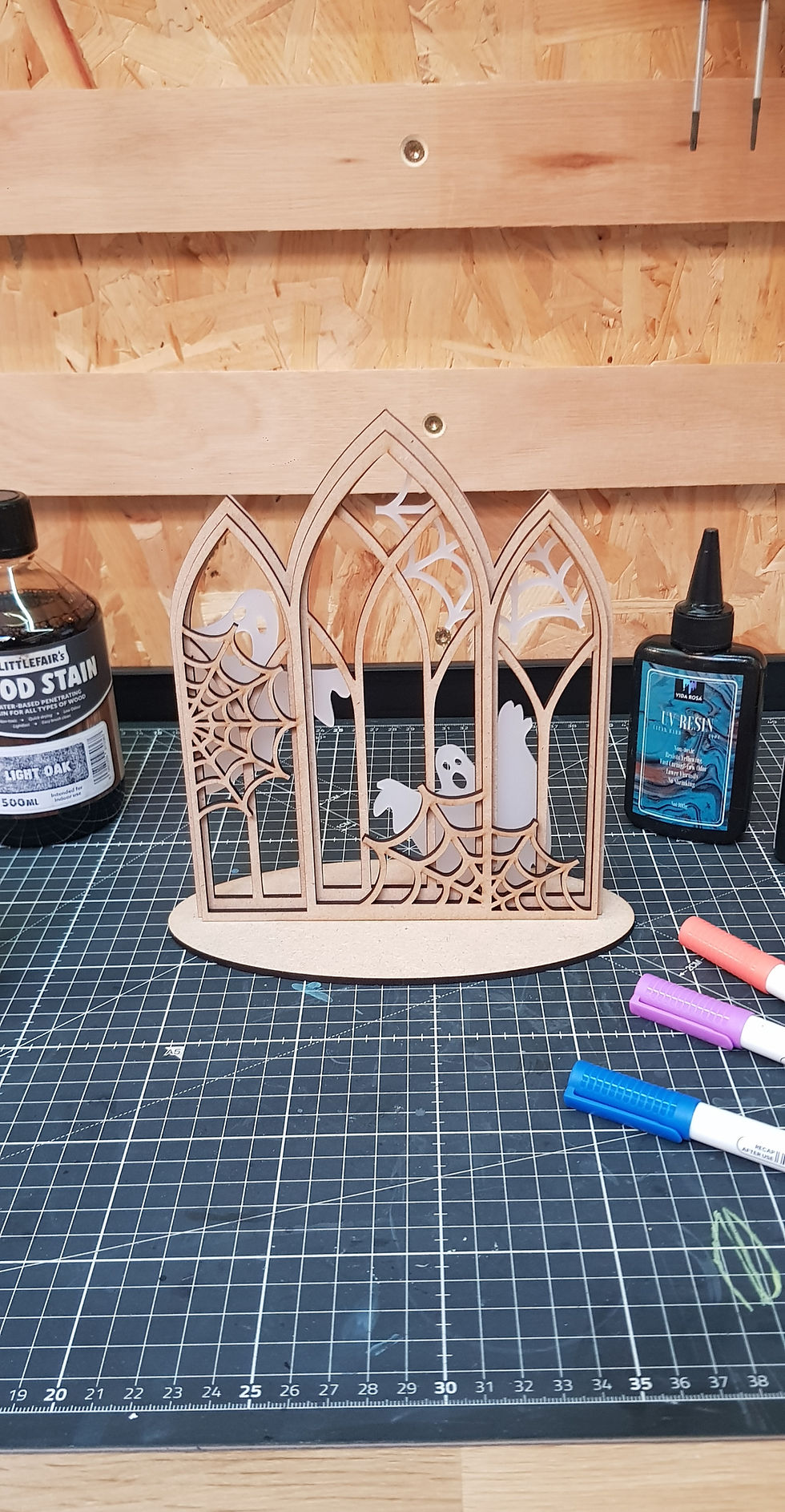 Halloween gothic window and ghosts stand up craft blank
